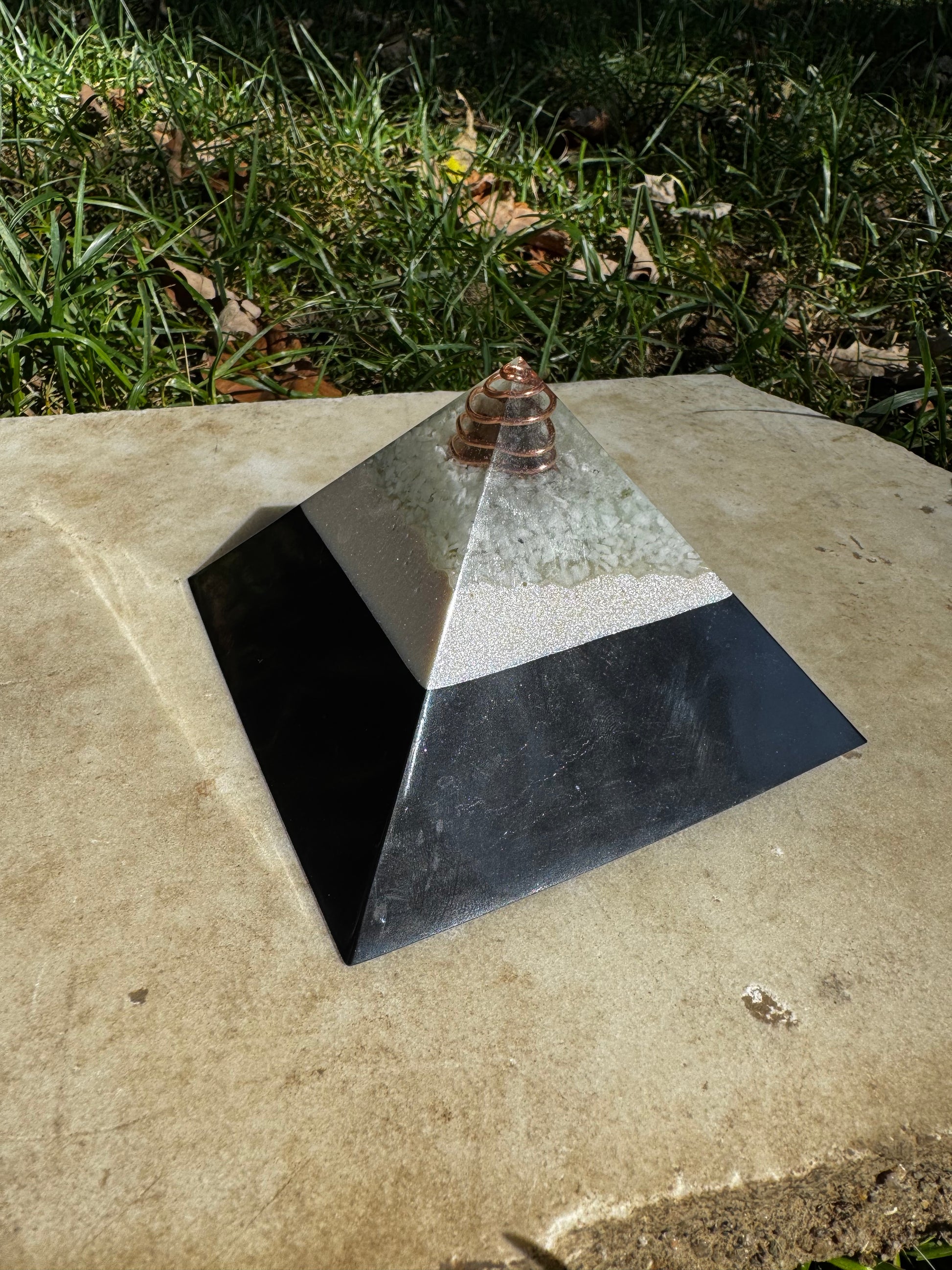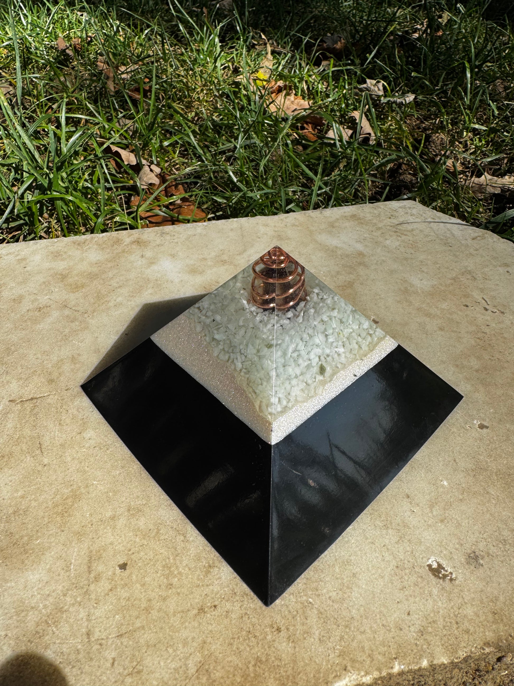 This beautiful stunning white on white is made with crushed Amazonite crystals. Let this pyramid refresh your space and add emf protection to any room in your home.